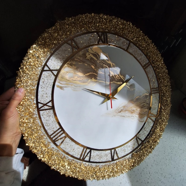 ساعت دیواری رزینی دستساز طرح عروس طلایی