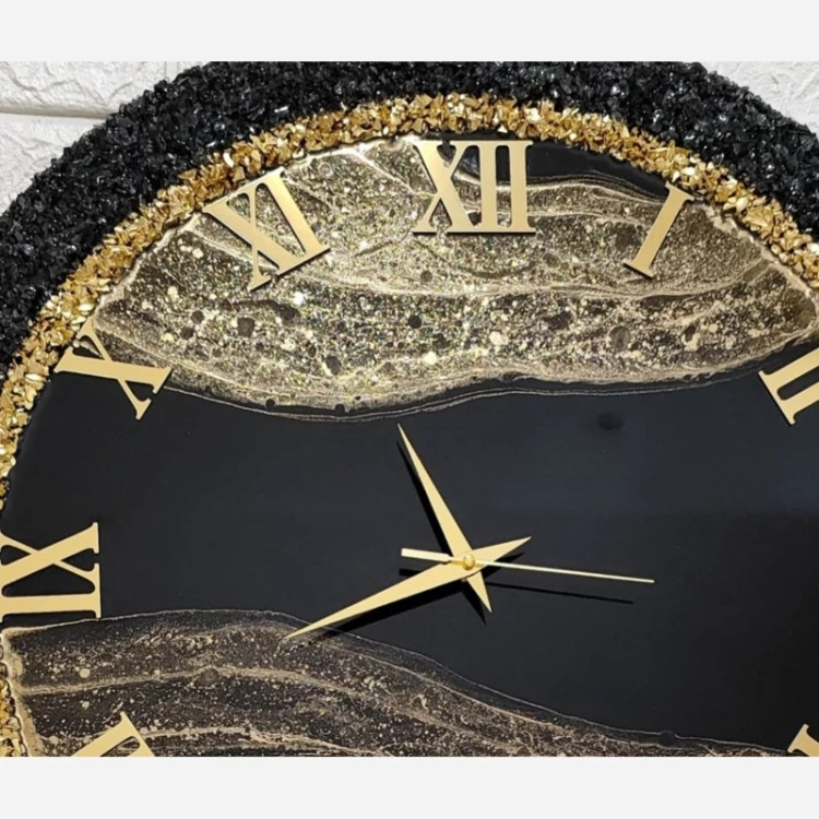 ساعت دیواری رزینی کریستالی مشکی طلایی