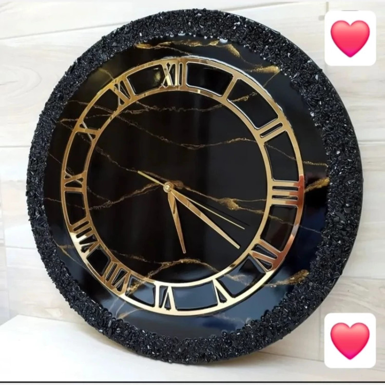 ساعت دیواری رزینی کریستالی مشکی