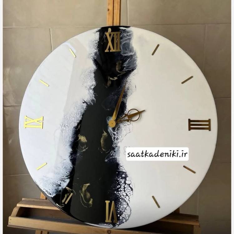 ساعت دیواری رزینی طرح دریا سفید مشکی