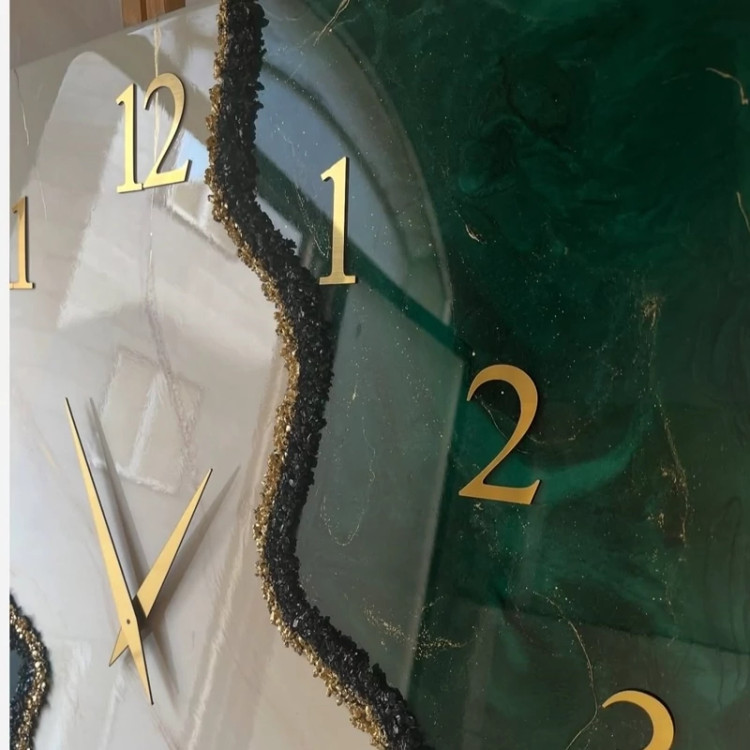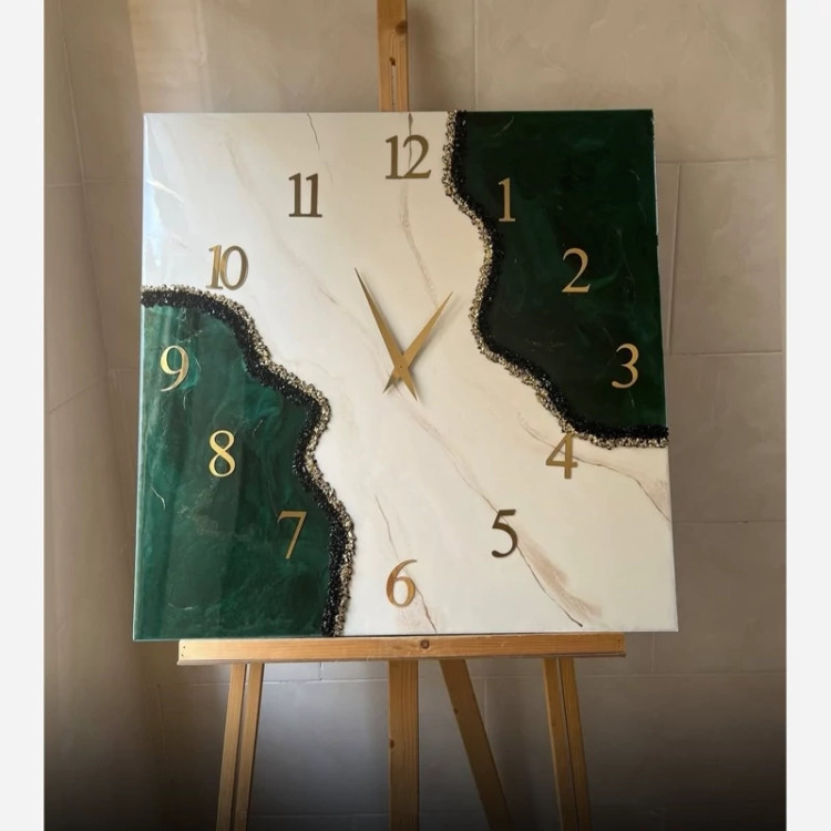 ساعت دیواری رزینی طرح مربعی سفید سبز