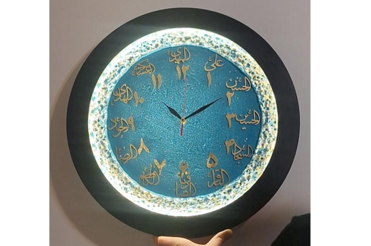 ساعت دیواری مذهبی طرح اسامی ائمه و اعداد