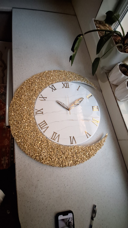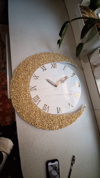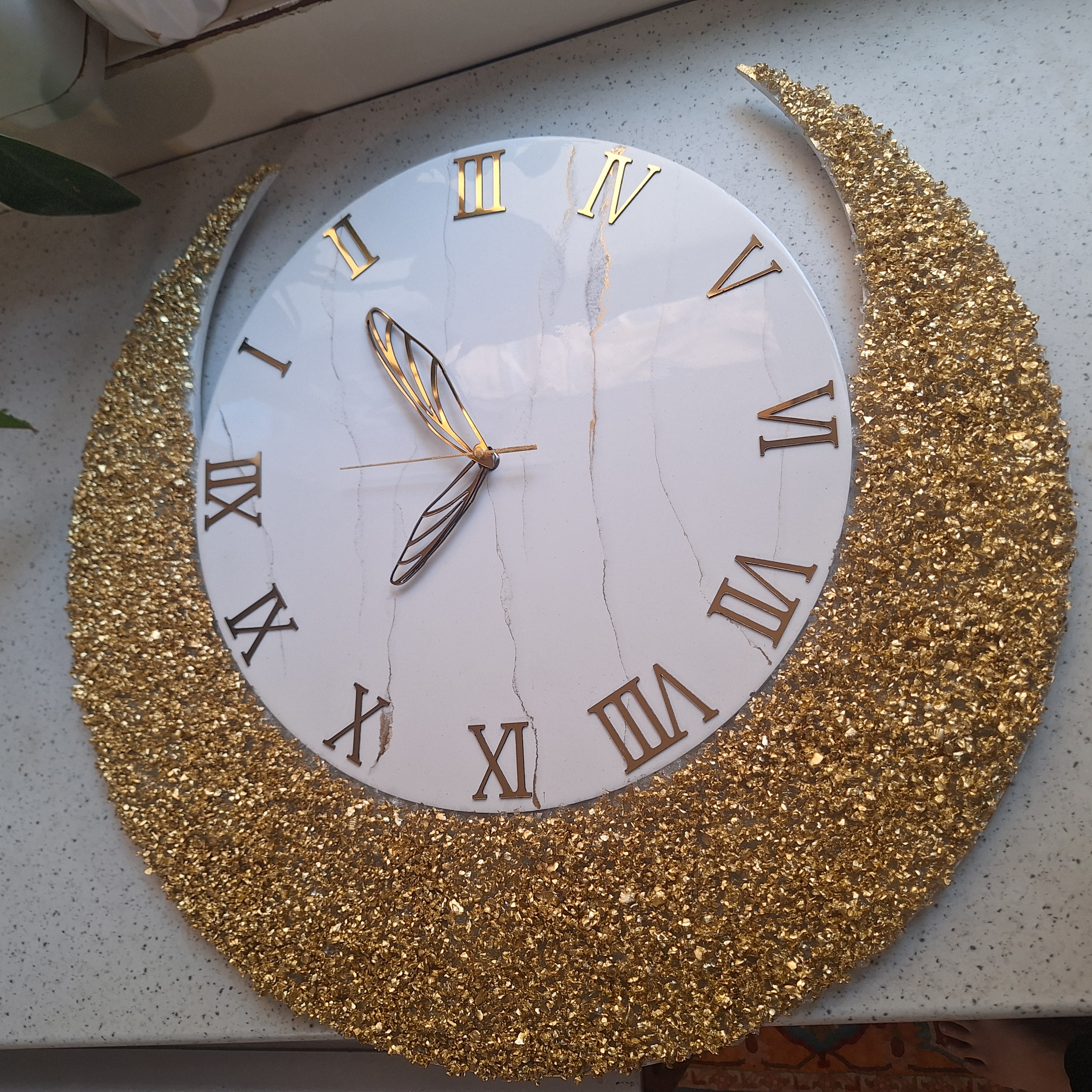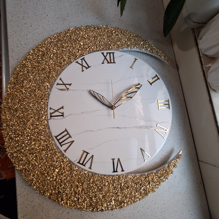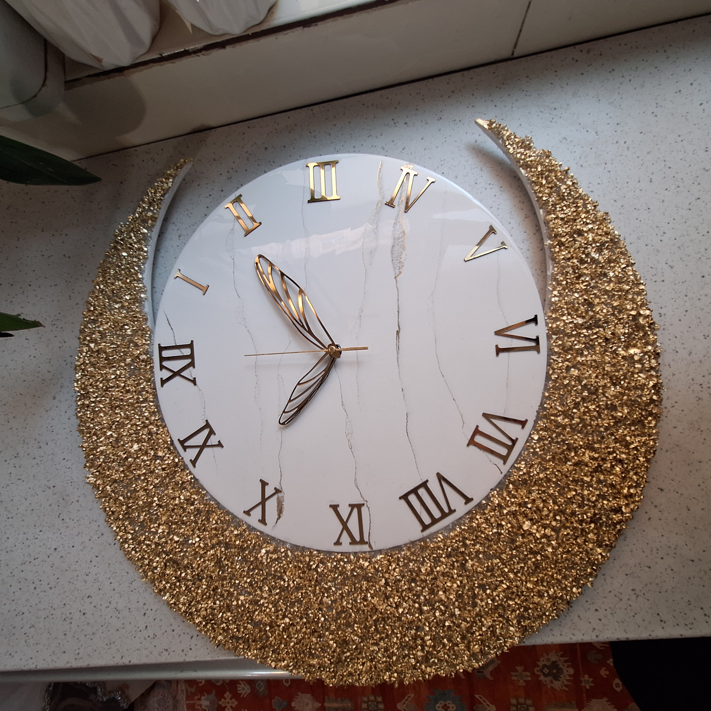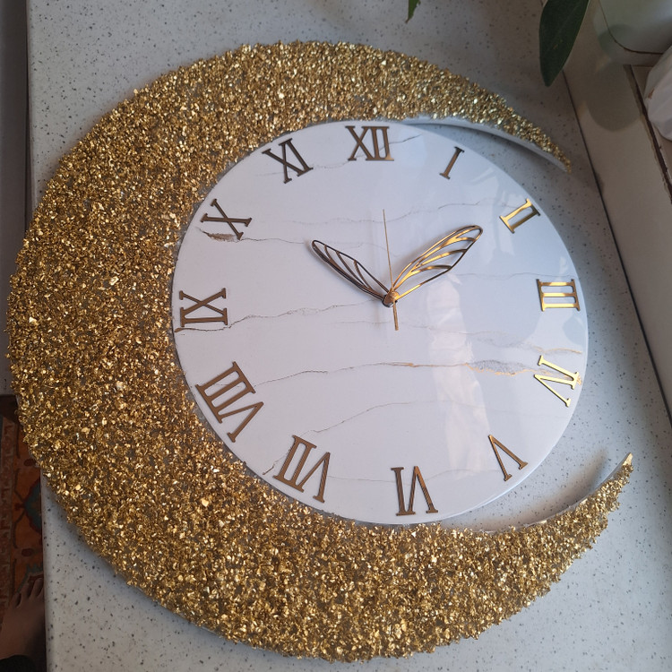 ساعت دیواری رزینی طرح ماه طلایی کپی