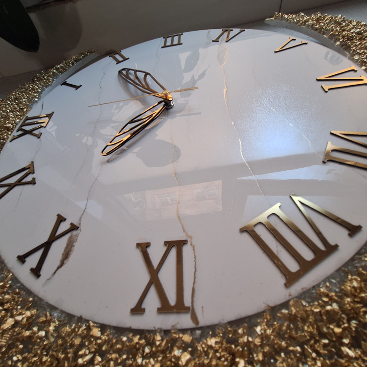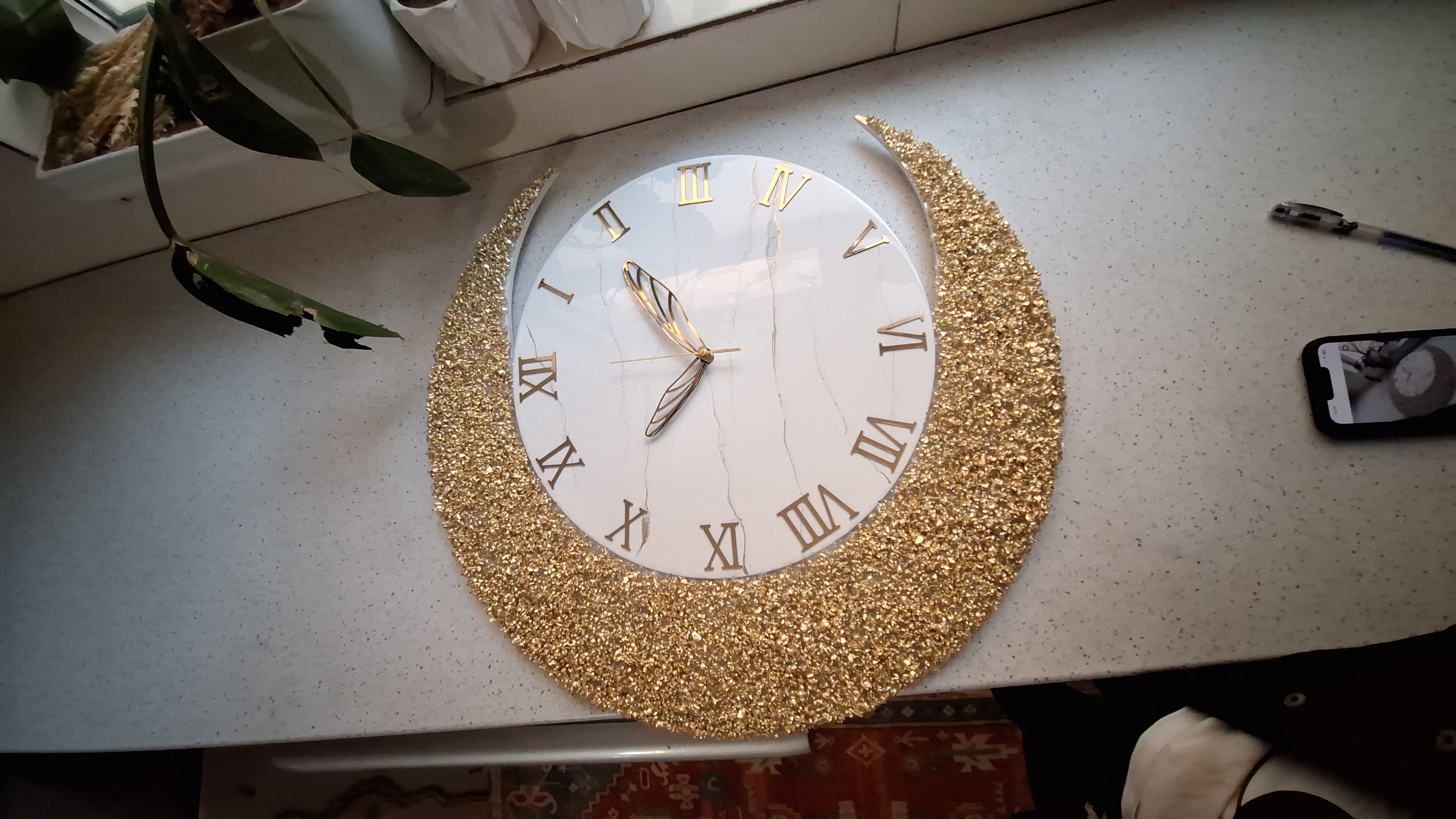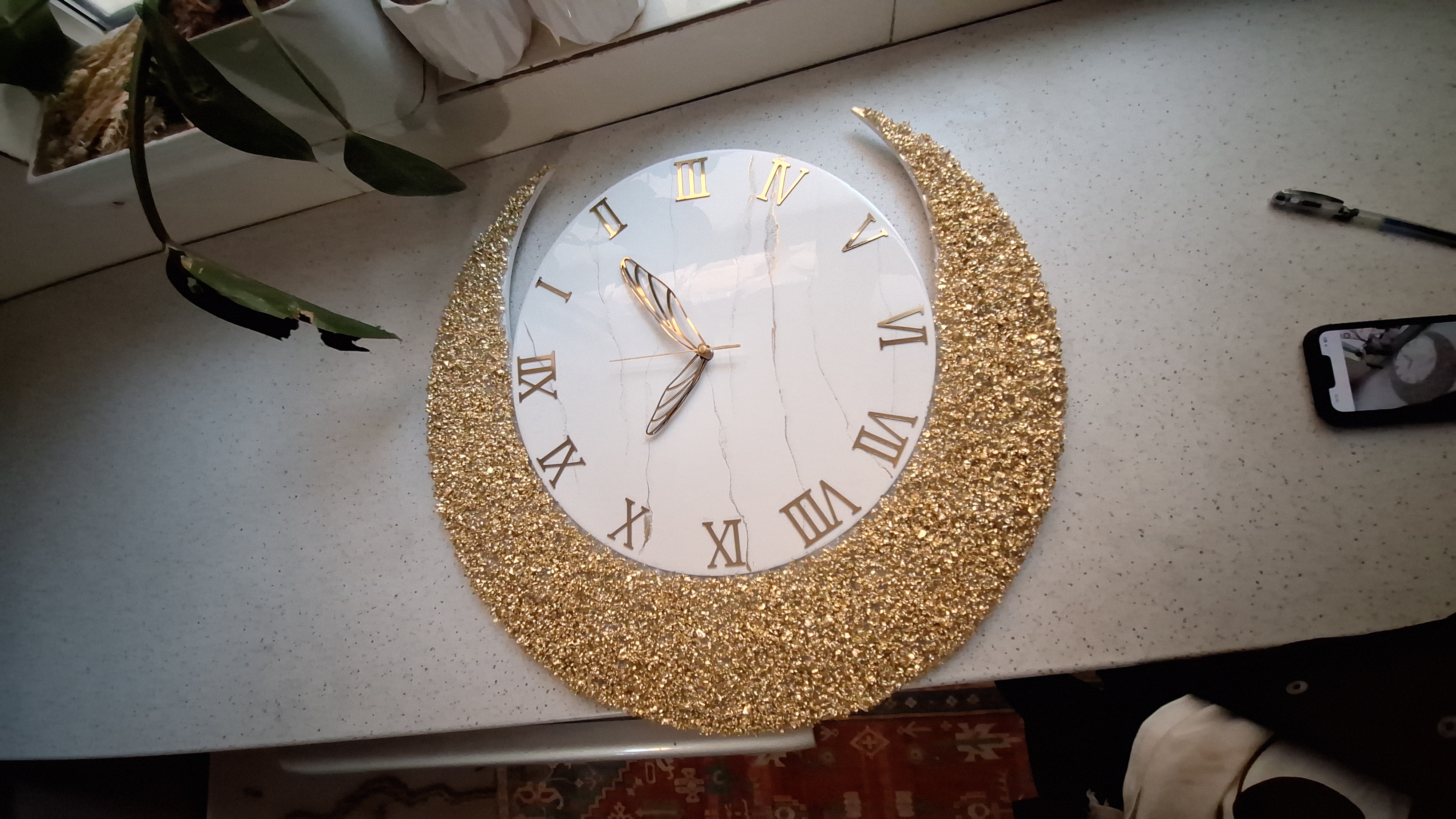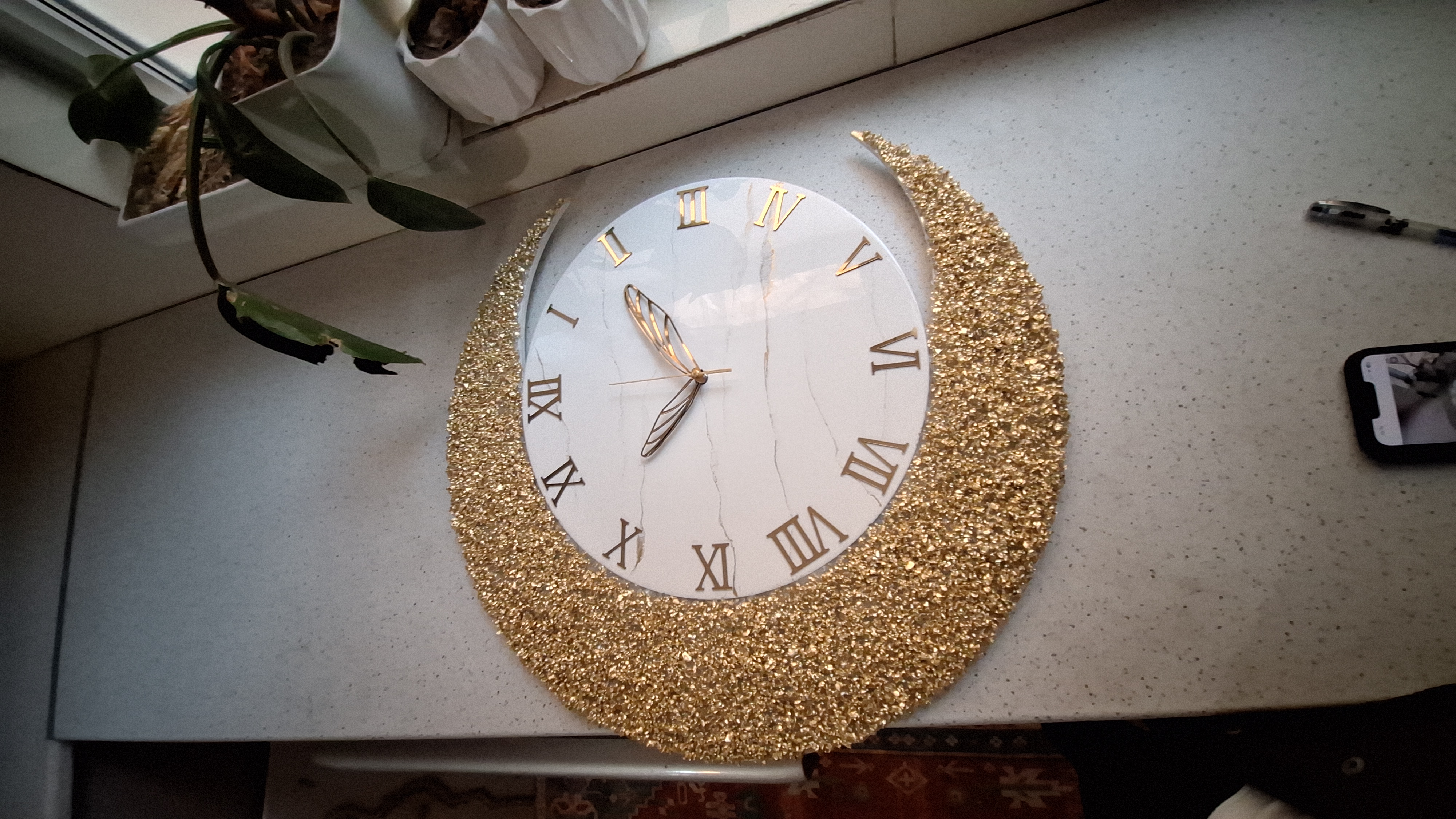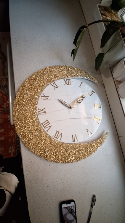 ساعت دیواری رزینی طرح ماه طلایی کپی